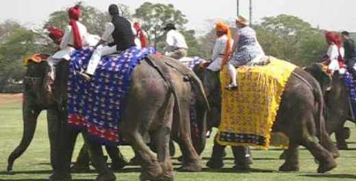 For the Elephant polo, the guests are welcomed in a royal way with showering of rose petals, offering the garlands, tilak and melody of shahnai and nagaras. A drink is served to all the guests and then the elephant polo is started with an attractive parade of decorated camels. Elegant backdrop music is provided by the military band along with an attractive parade. All the guests are provided with a Royal Elephant polo Broucher. Rules of the game are announced by the commentator and he also tells about the historic events associated with Elephant polo and the royal family. An autographed momento is awarded to all the guests after the match is over. Lunch ,dinner, hi-tea are also arranged for the guests.